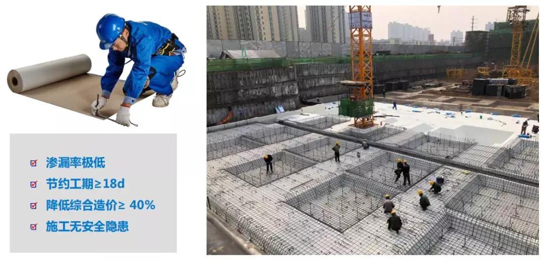 為了打造品質(zhì)無(wú)憂(yōu)的防水工程,凱倫股份創(chuàng)造性地研發(fā)出了以MBP高分子自粘膠膜防水卷材為核心的預(yù)鋪防水系統(tǒng),在具備優(yōu)異防水性能的同時(shí),還實(shí)現(xiàn)了優(yōu)化構(gòu)造層次、減少土方開(kāi)挖量、承臺(tái)坑立面無(wú)需抹灰、墊層厚度可減薄等施工流程上的簡(jiǎn)化,真正實(shí)現(xiàn)了工期縮短、滲漏率低、后期維護(hù)少。