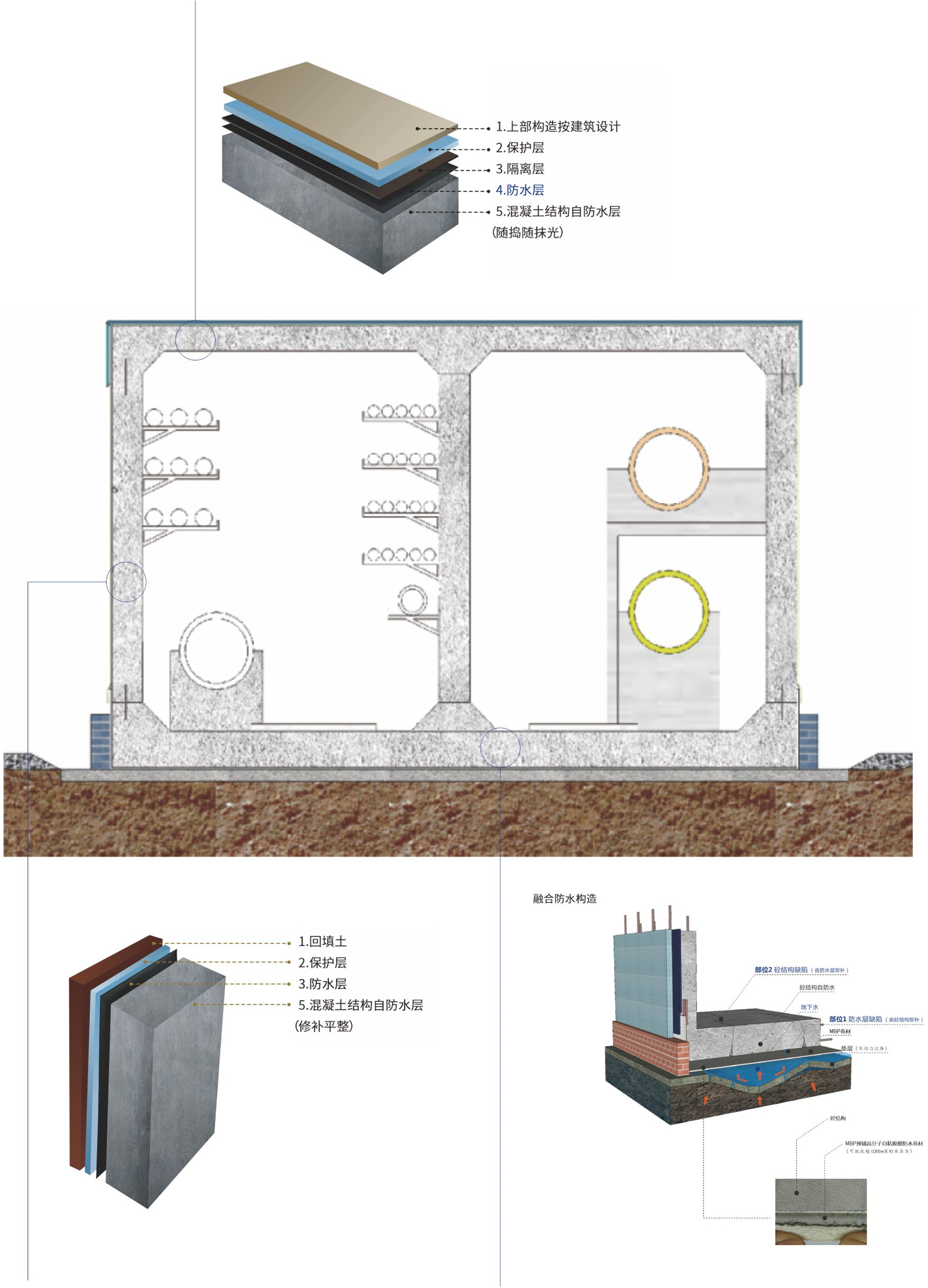 管廊作為各種功能性管線埋設的整體解決方案,設計使用年限要求為100年,一個耐久穩(wěn)定、干燥不滲水的管廊內部空間顯得尤為重要。凱倫股份針對管廊防水采用的“融合防水技術”,保證管廊使用年限。