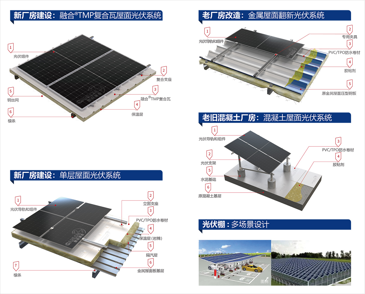 融合光伏屋頂系統(tǒng)具有系統(tǒng)優(yōu)、質(zhì)保久、低成本、高收益、利社會五大核心優(yōu)勢,助力國家的能源體系綠色低碳轉(zhuǎn)型戰(zhàn)略。